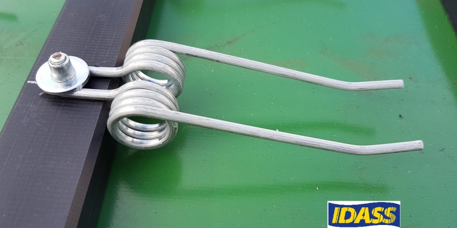 Le ramasseur est entraîné par moteur hydraulique et dispose d'un efficace système de tension automatique, de solides doigts métalliques courbés, à ressort, de 120 mm de long, espacement entre doigts de 50 mm boulonnés sur les MONO-TAPIS .